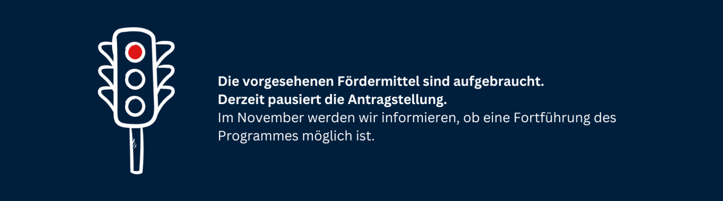 Die vorgesehenen Fördermittel sind aufgebraucht. Wir informieren im November an dieser Stelle, ob eine Fortführung möglich ist.